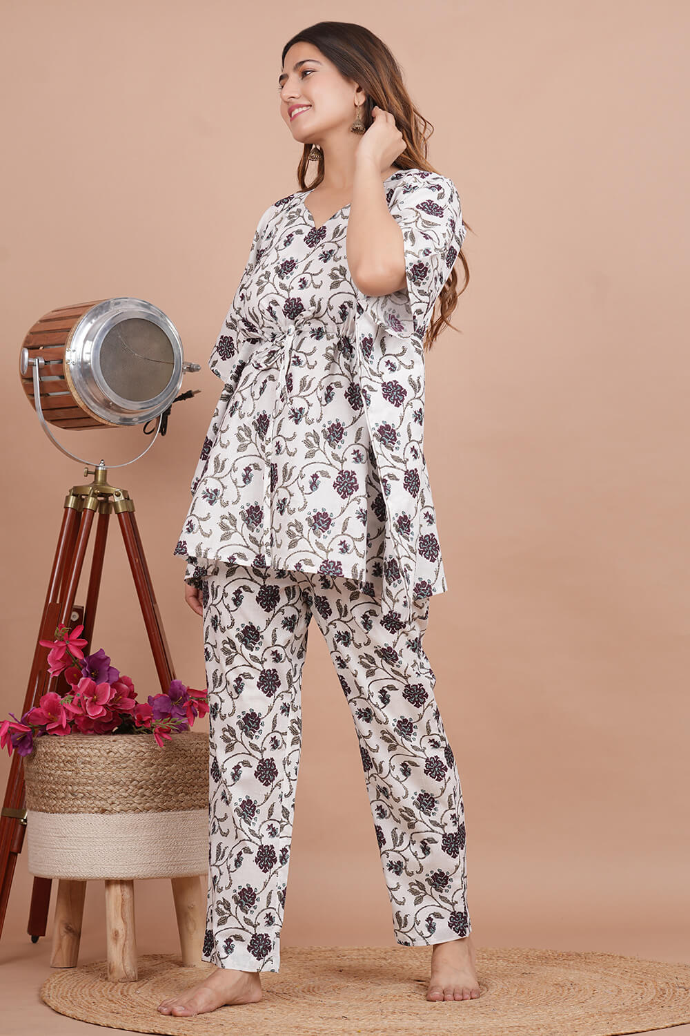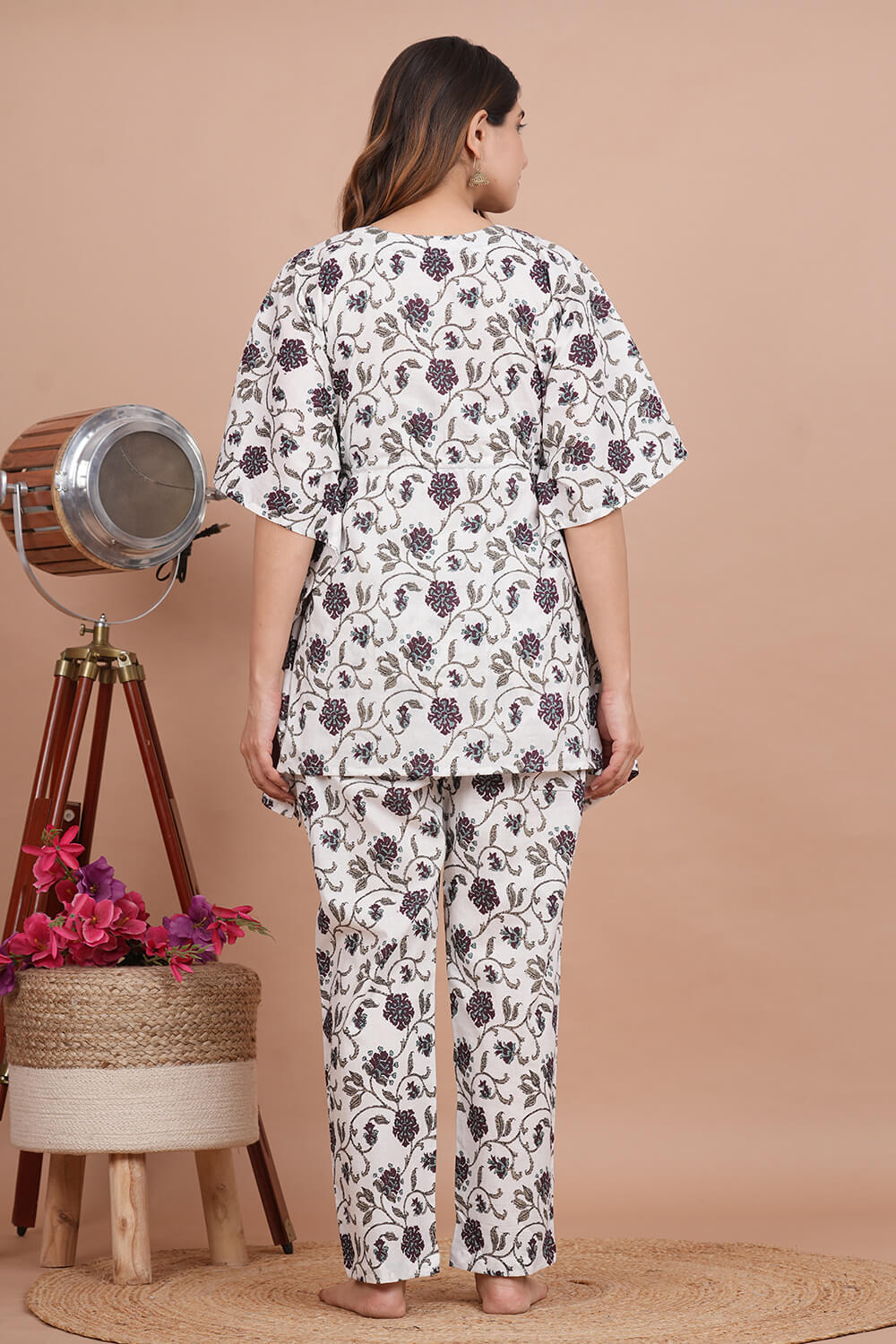 Night Wear Kaftan top with pants made from cotton.